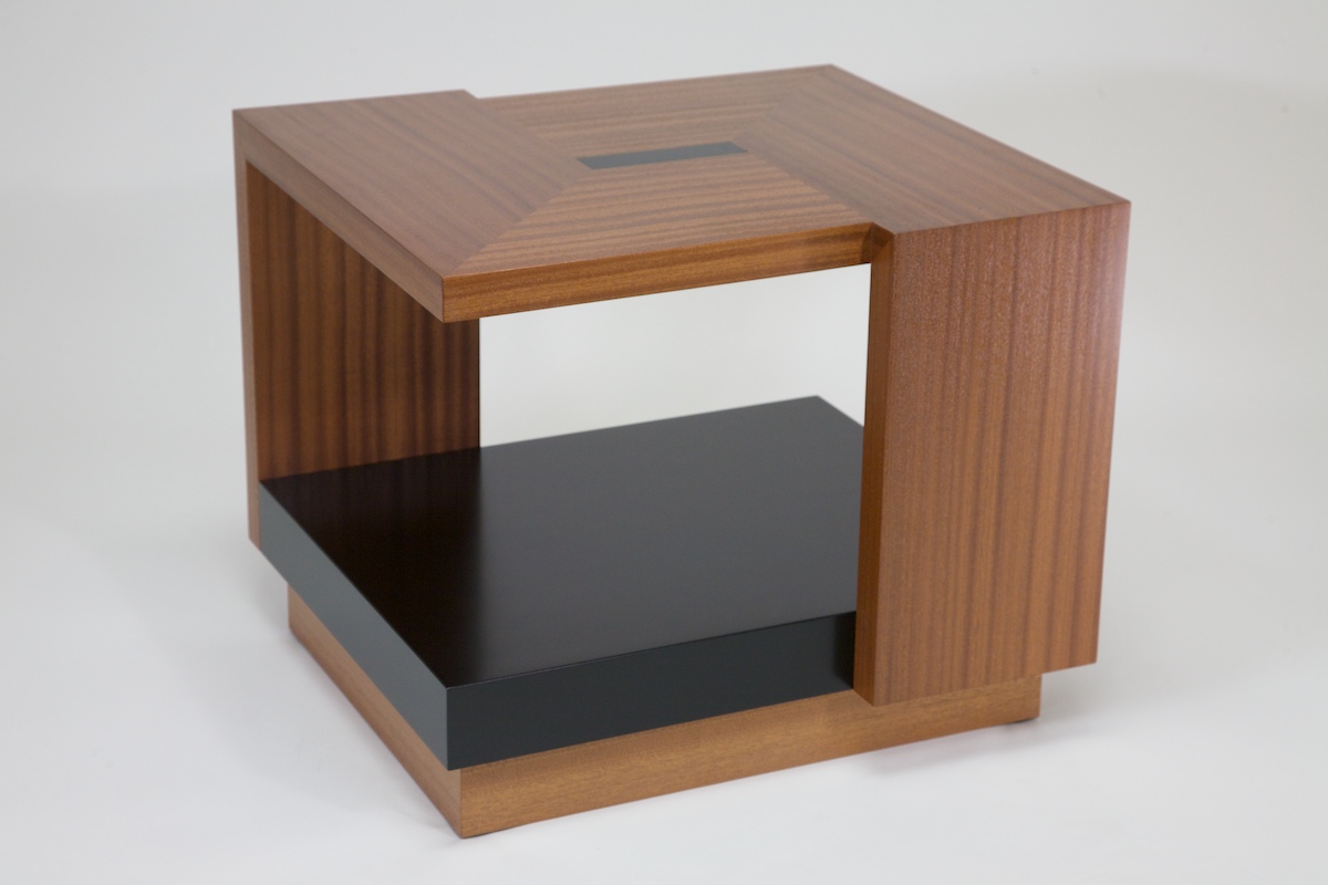 1ST PLACE WINNER — Bill Barrand’s table is a veneered open cube with a waterfall appearance