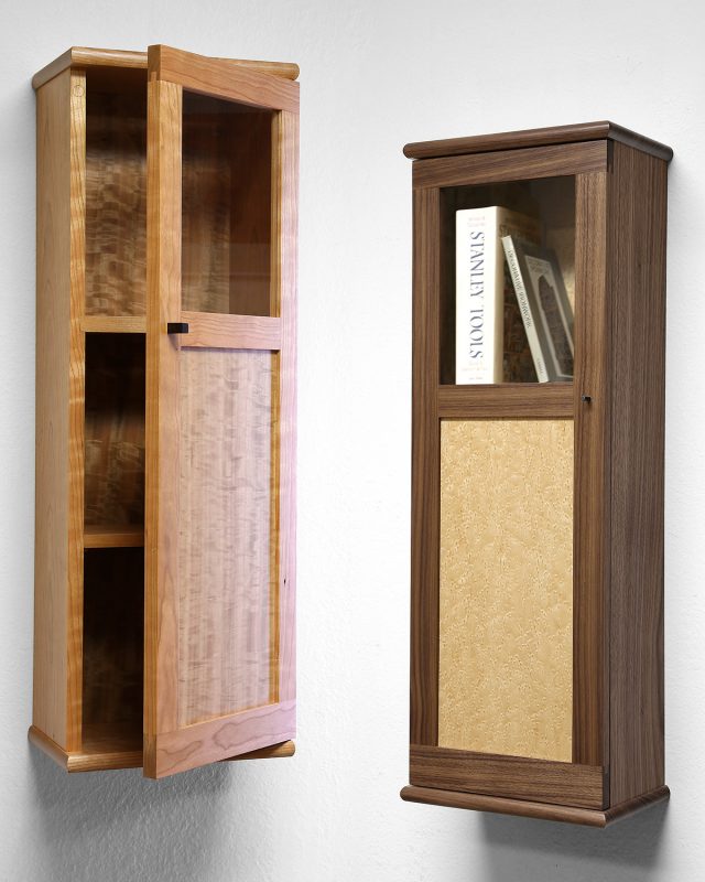 You keep your project, and you have a choice to make the cabinet in Cherry hardwood with a figured Cherry panel or Walnut with a Birdseye Maple panel.