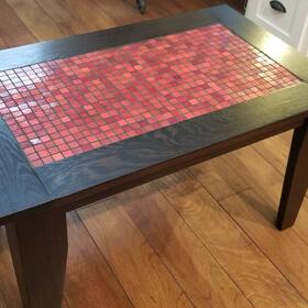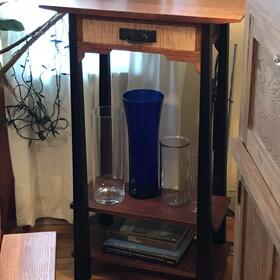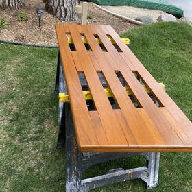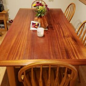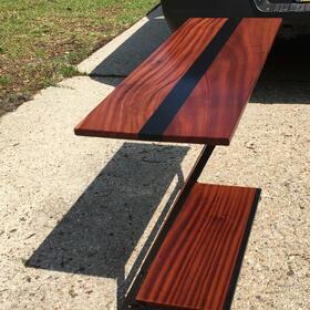 outdoor table for My wife and I Made from african Mahogney from wood workers source(3)