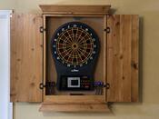 This electronic dart board cabinet was really an excuse to do a cool CNC project. I spent a good amount of time on the computer developing the personalized design, and created the cabinet design from scratch. I used Sketchup to layout the cabinet just to get used to the software. (I now use Sketchup for my 3D printing projects as well).
