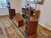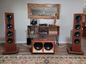 Over a year ago I embarked on making my own high-end speakers from parts/plans by GR-Research following delays in shipping thanks to the pandemic. I decided to use Sapele veneer for the speakers and at the time Sapele was on sale at Woodworkers Source, so I purchased enough to also make a corresponding media console. I couldn't leave good enough alone and went way overboard on the speakers to ensure there would be no cabinet resonance. The speaker cabinet is made from laminating MDF to Baltic birch plywood to make 1.5 inch-thick walls. The interior is lined with vinyl floor tiles and acoustic foam to further reduce resonance. This was my first foray into veneering, and overall, it went very well. My initial attempts at using polyurethane for the finish reminded me why I hate polyurethane and ended up taking the cabinets to a cabinet refinishing shop to get a lacquer sprayed on.