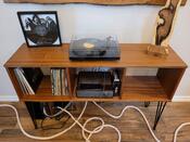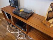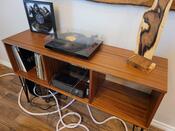 The media console went together much faster. I wanted a mid-century modern look, which makes for a very straightforward build. I made the console from solid 4/4 Sapele and used Festool Dominos throughout for all joinery. The rear panels of the cabinet are 1/2-inch baltic birch ply set into dados. Legs are metal hairpin legs from some reseller on Amazon. This time I used my go-to finishing product - Osmo Wood Wax. It is a penetrating finish that is both protective and very forgiving. I apply 2 coats, wiping off excess after 30 minutes. Finally, I apply a paste wax with a fine abrasive pad to create a silky, semi-gloss finish.