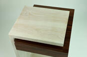 He crafted a continuous grain box out of gorgeous morado to serve as an unassuming - or perhaps hidden - storage space. The only access to it is through a panel attached by magnet and otherwise unnoticed by the casual observer.