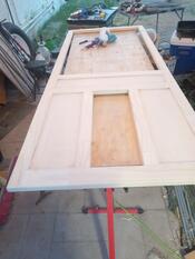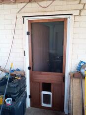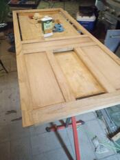 I purchased a screen door from a big box (my mistake) original construction was mortise n tenon with staples on one side to hold it together I disassembled it added pocket holes glued the tenons adjusted the bottom verticals for the door sandedit down applied cherry stain 3coats and then 8 coats of spar urethane
