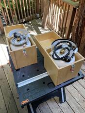 I wanted to keep these smaller propane tanks secure in my van for camping. I used the lighter 1/2” premcore white birch that I bought from you guys. Made some rolled leather handles for the top.