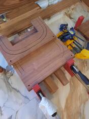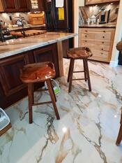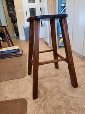 Counter Stools using 4/4 Caribbean Rosewood. Created tenons with the router and sanding, scooped the seat using a Dado set on the table saw and a chain saw attachment on an angle-grinder. Swivel seat attachment.