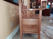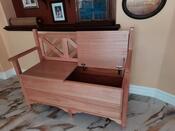 Ava asked for a bench for her 12th birthday, with specific dimensions, she also asked for a back and arms. I wanted it to not be clunky, so I routed some detail into the legs and the top of the bench, as well as some trim pieces that I applied. We also used soft-close and controlled close hinges to keep fingers from being hurt.