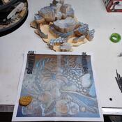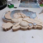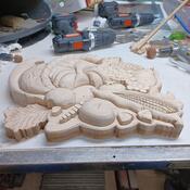 Cut up the picture in to small pieces with the scroll saw so I could hold them in my hand to carve with the Dremel and some very small air angle grinders from Harbor Freight