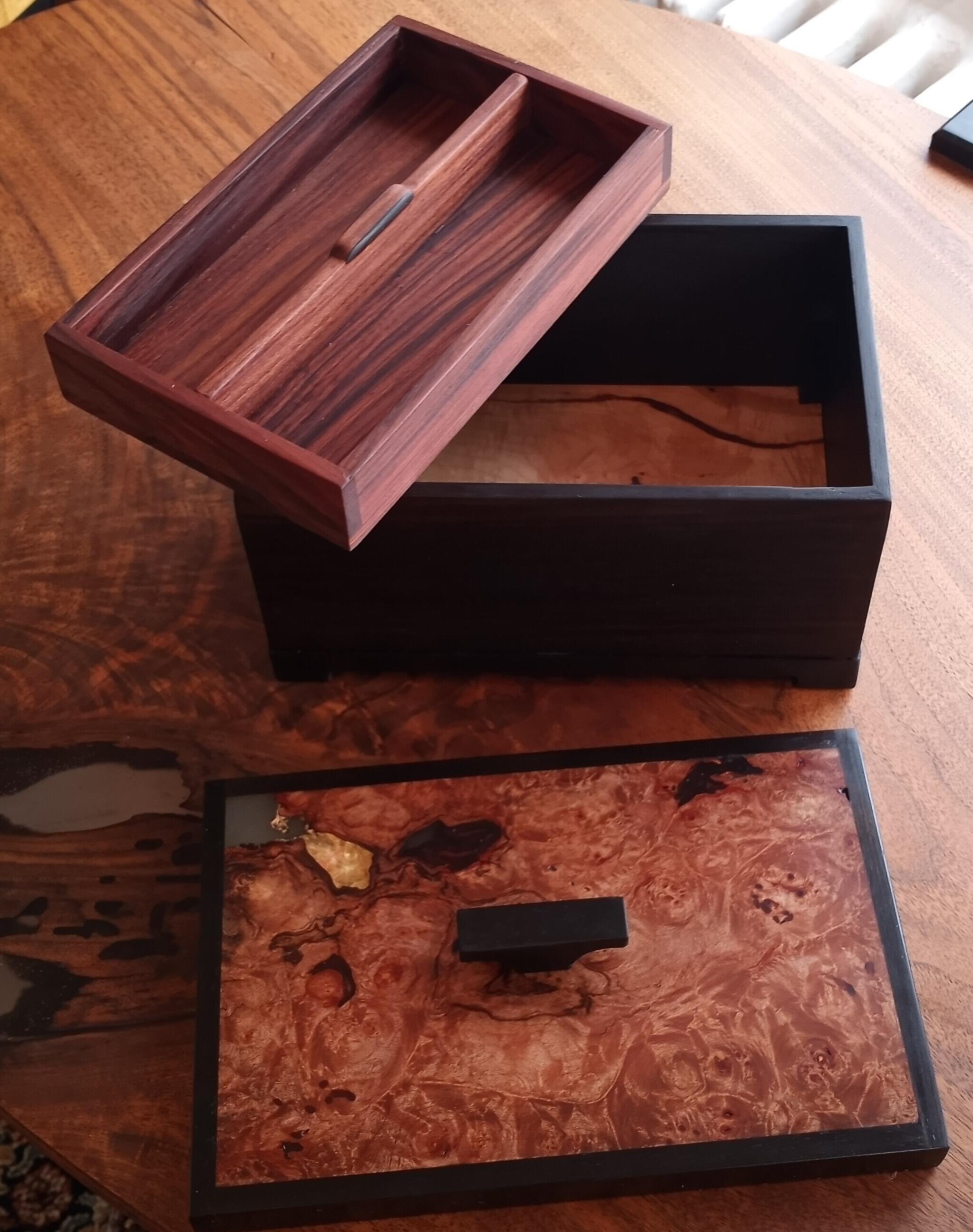 Boxes for Holiday Gifts by Paul Smith (4 other projects) BoxesEbony, BlackHickoryMaple, Hard WhiteRosewood, BolivianSycamoreHand Tools OnlyGroup of boxes for family giftsFinish: Danish OilNo project plans available.Project posted: October 14, 2023Please enable JavaScript to view the comments powered by Disqus.