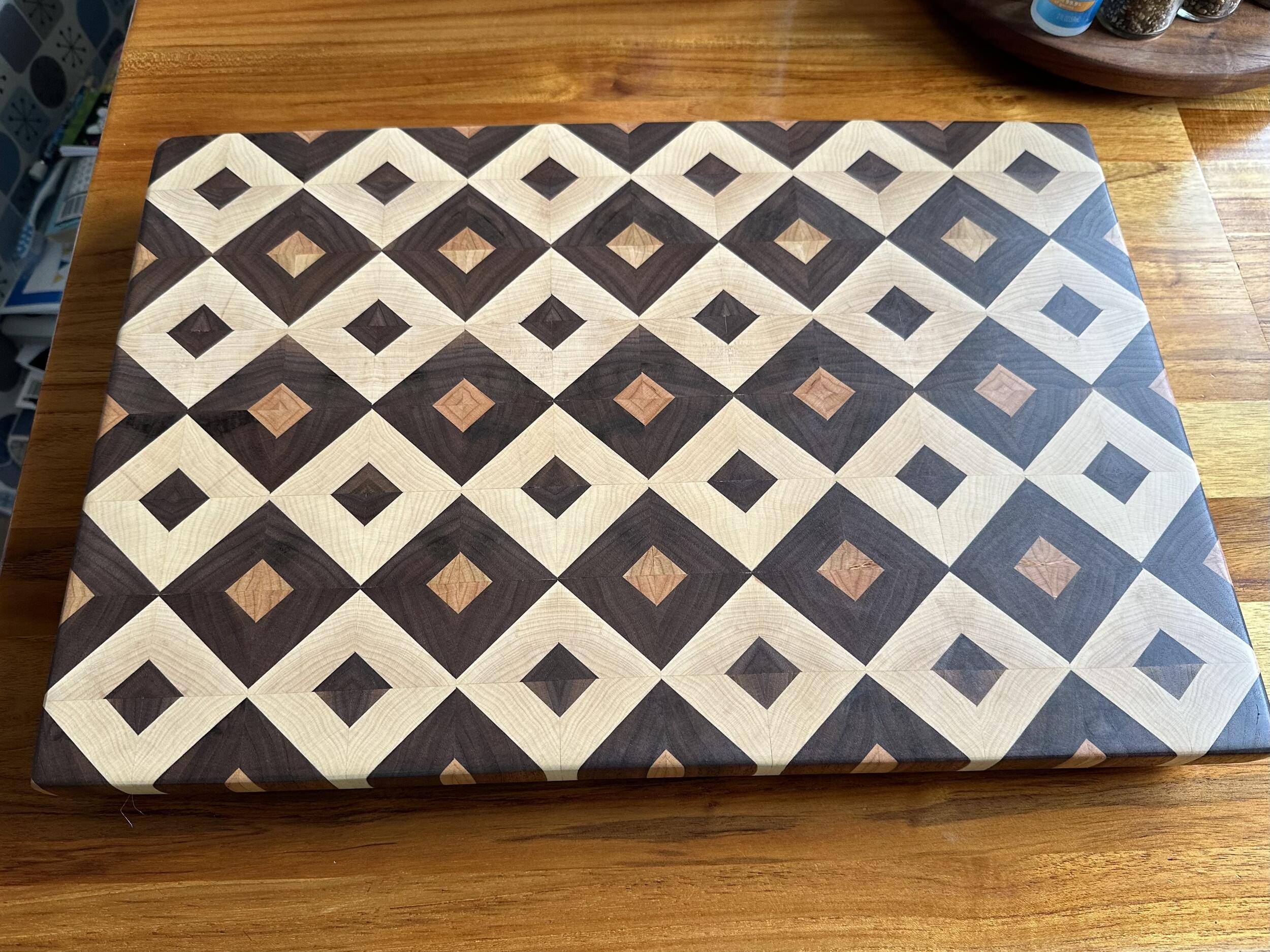 Diamond end grain cutting board by SpoFood & DrinkCherryMaple, Hard WhiteWalnut, BlackNo project plans available.Project posted: December 29, 2023Please enable JavaScript to view the comments powered by Disqus.