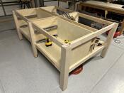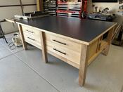 Outfeed table for shop, design inspiration from Jason Hibbs at Bourbon Moth. 6/4 and 8/4 Maple used along with 3/4” Birch ply and 5/8” Baltic Birch for drawers. 21” Blum undermount slides, laminate top. Dimensions: 56” W, 86” L, 35” H. Approx weight 750lbs