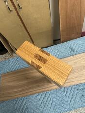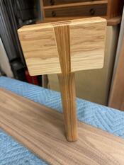This is the mystery mallet and a real challenge. Tried to use Walnut head for contrast but the pressure broke the head in three pieces and I went through a couple of Walnut heads.. Not a big fan of self abuse so I switched to Hickory. I did have a slight tear out along the edge of the sliding dovetail but overall I am pleased with the results. Probably won’t do another one for awhile.