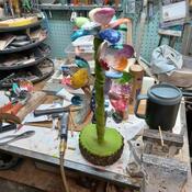 the base is part of a limb ,the stem is Ash and the flower petals are bass wood.