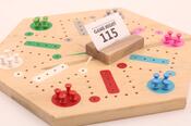 Check out this handcrafted hexagonal masterpiece—a colorful battlefield where pegs go head-to-head in what looks like an epic showdown of strategy and luck! 💡💥 The bold, painted pathways scream "Pick me! Move me! Win the game!" as teams of red, blue, green, white, pink, and gray pegs plot their way to victory.
