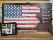 Etched into the wood, the words "Honoring all who serve to preserve our freedom" serve as a solemn reminder of the courage and dedication of those who answered the call of duty. Accompanied by cherished photographs of veterans, this piece is more than art—it's a legacy of gratitude, a testament to service, and a deeply moving expression of respect for those who have safeguarded our way of life. 🇺🇸✨