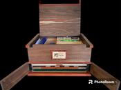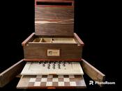 This box was created for the Game Night Contest. It features an upper compartment for storage of card games, poker chips, chess and checker pieces, etc. Opening the doors reveals two game boards. One of them is a steel marble (solitaire) game. The other is a traditional chess/checker board.