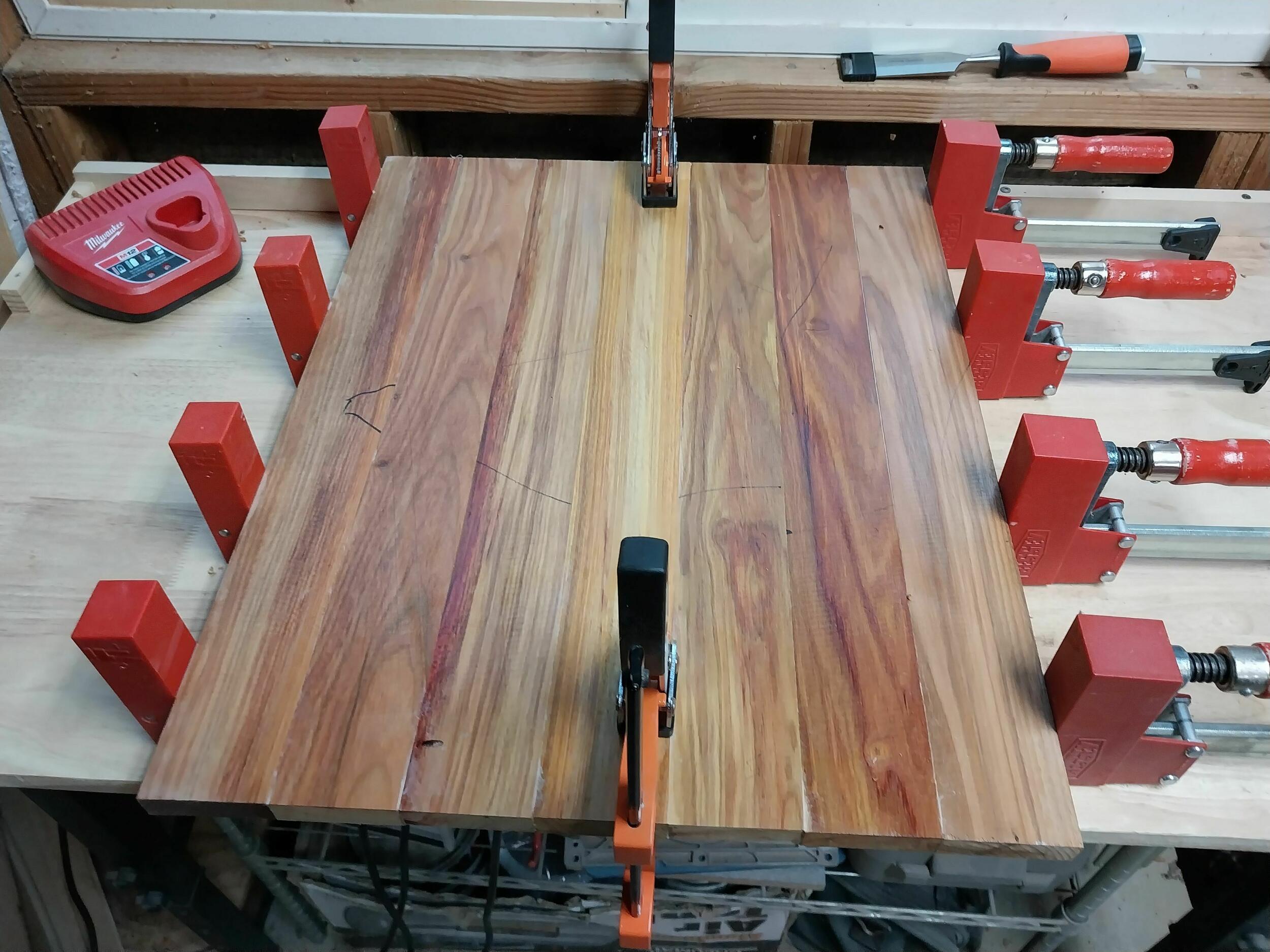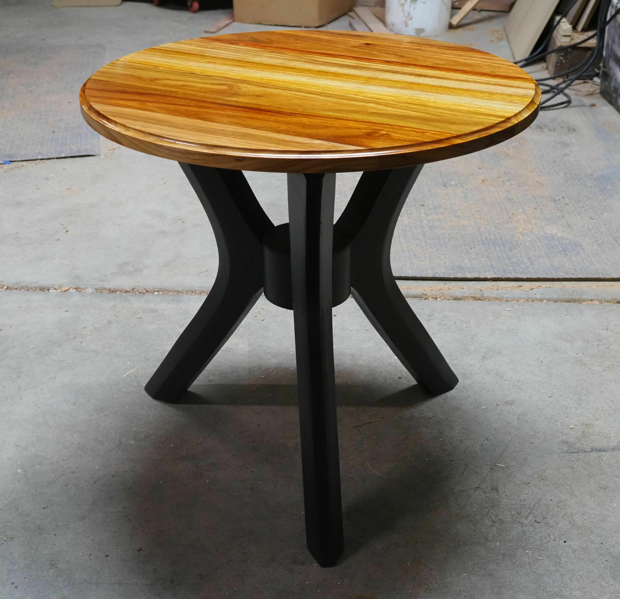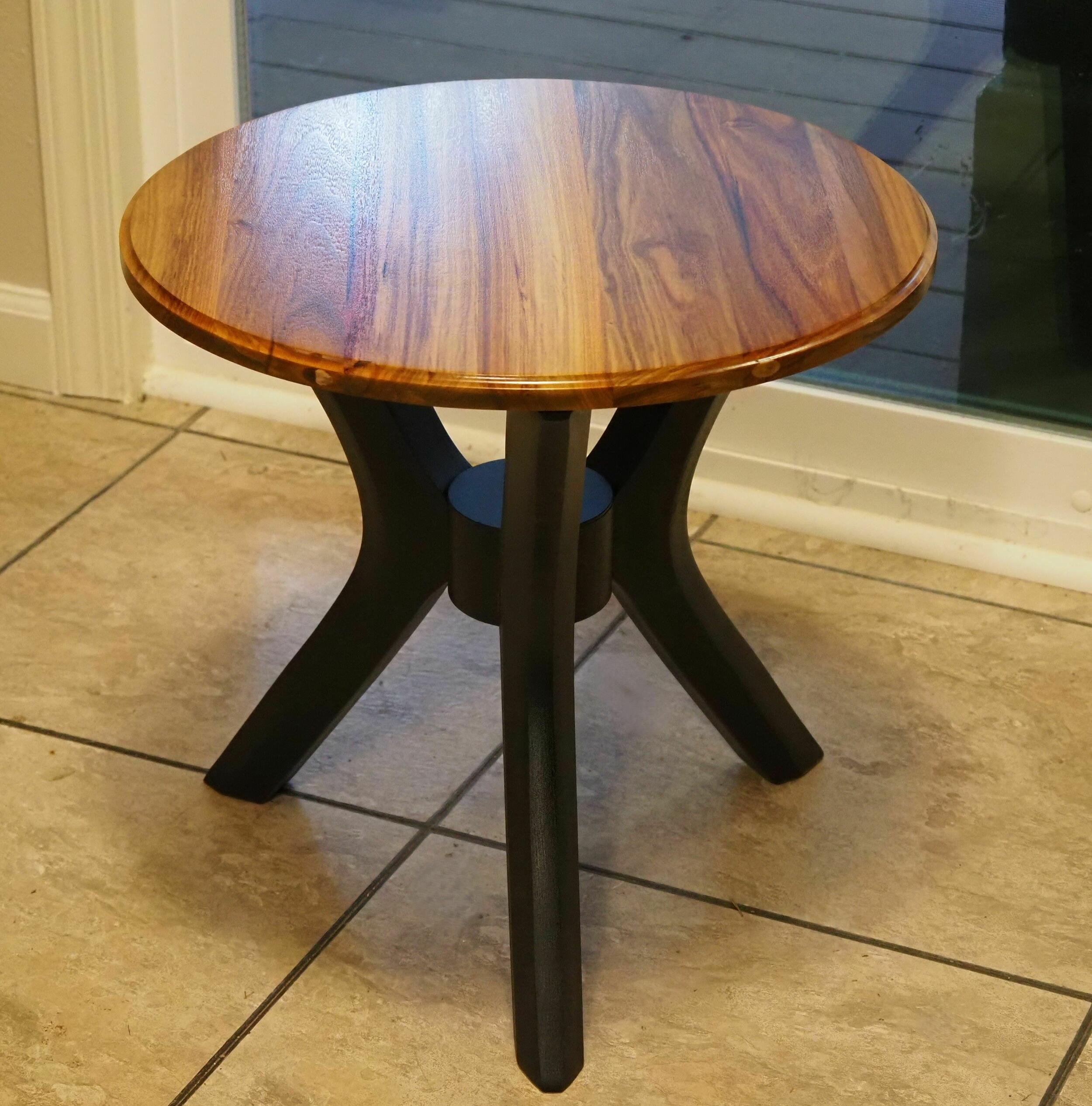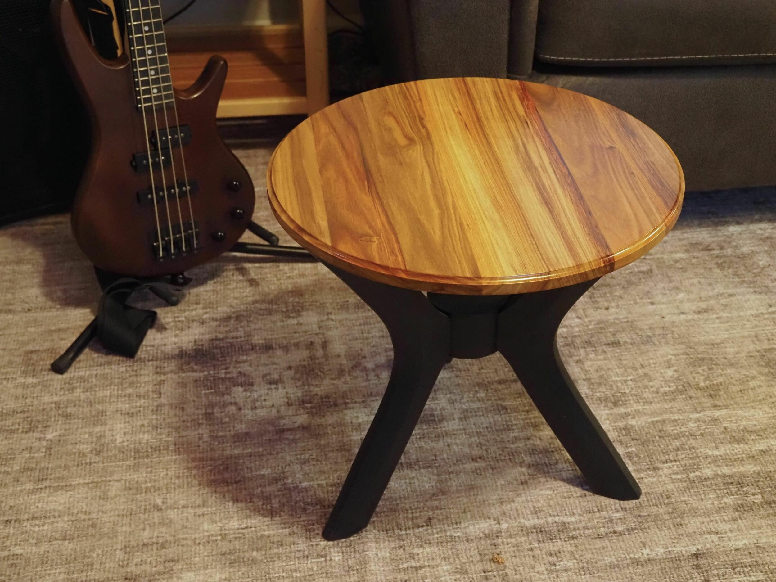 Due to time restraints I purchased the Beech legs then dyed with chinese ink. Seven Canarywood shorts were doweled and glued together for the top. Everything then recieved it's due of matte lacquer.
