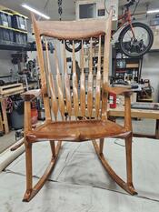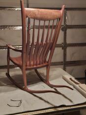 Plans developed from rocking chair section of Maloof's "Woodworker" book and his 80's article in Fine Woodworking magazine. Used pictures, sketches, and Maloof's descriptions from these references.