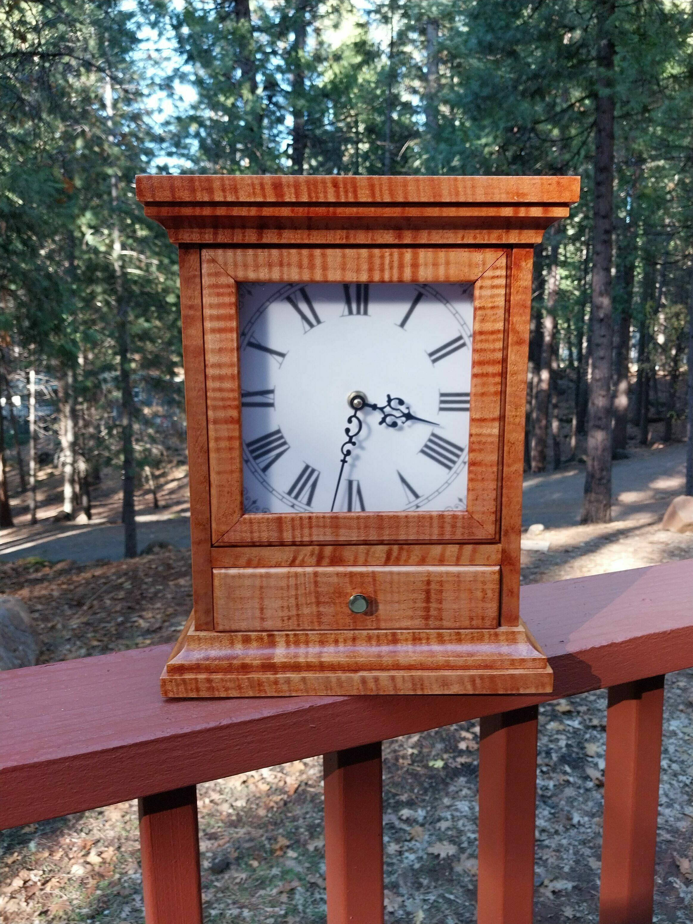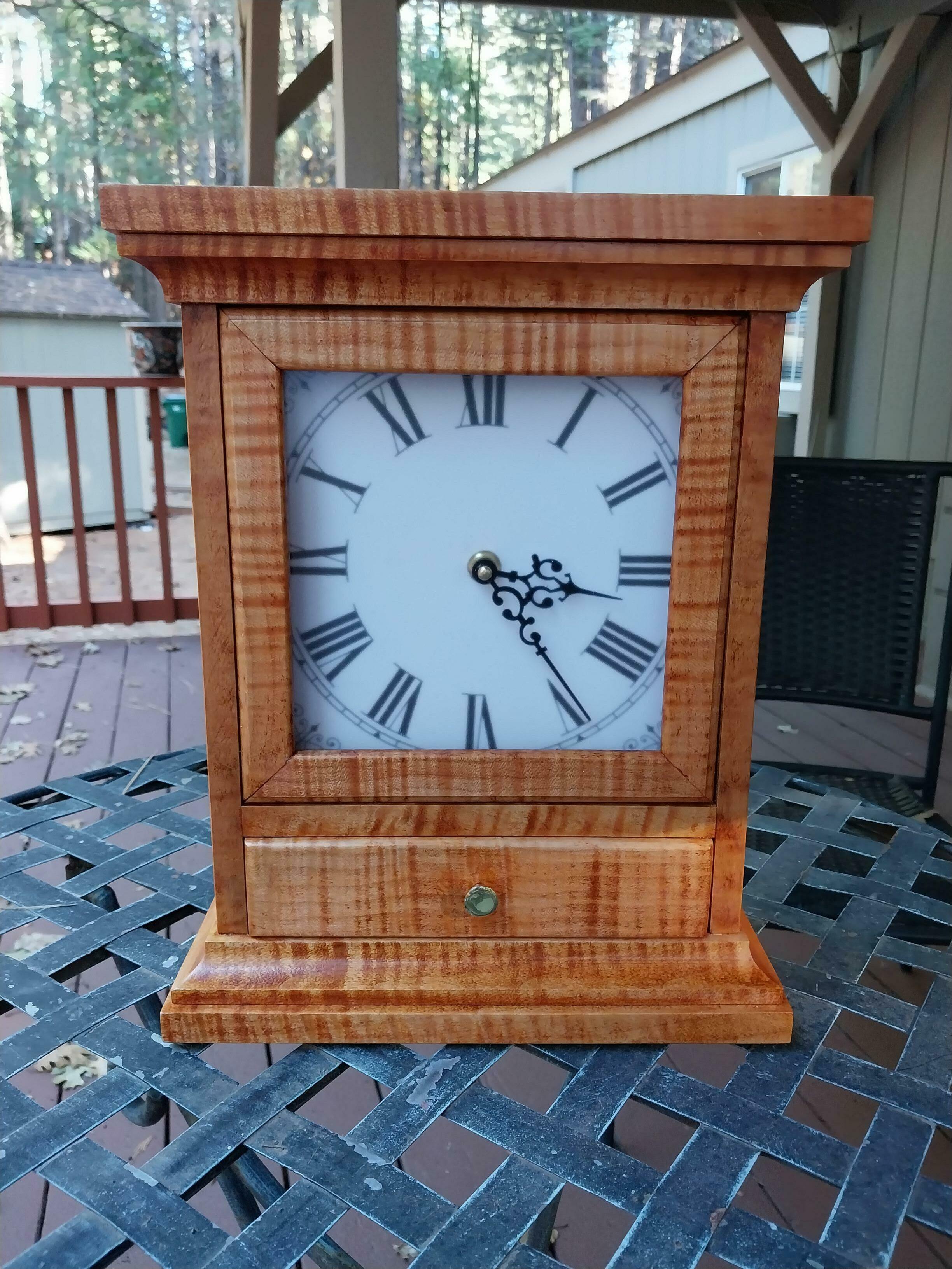 Made this clock for a Friend of mine. Nature made the wood, I hacked and hewed and put it together. I used non glare acrylic instead of glass. The time ring seems a bit too big and I ordered some different hands. Woodsmith plans.