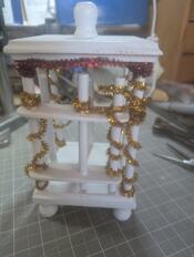 A Fairy Cage with a small magnet in the floor to "catch a fairy by her rings or bracelet" and small bells hanging from the ceiling that rings when the fairy flutters her wings. With a simple decorative pipe cleaner decor by which the door can be secured. For my granddaughter.