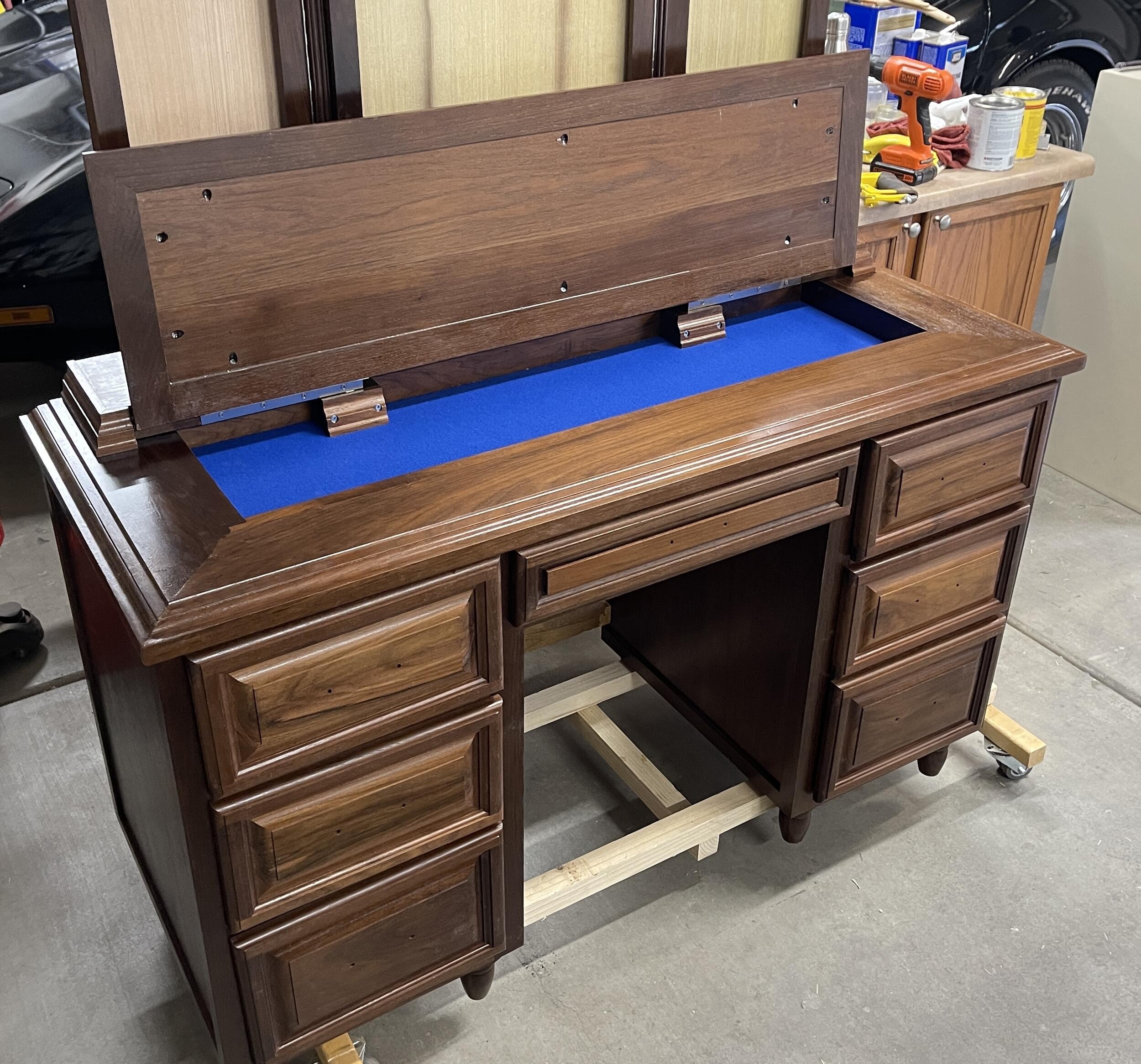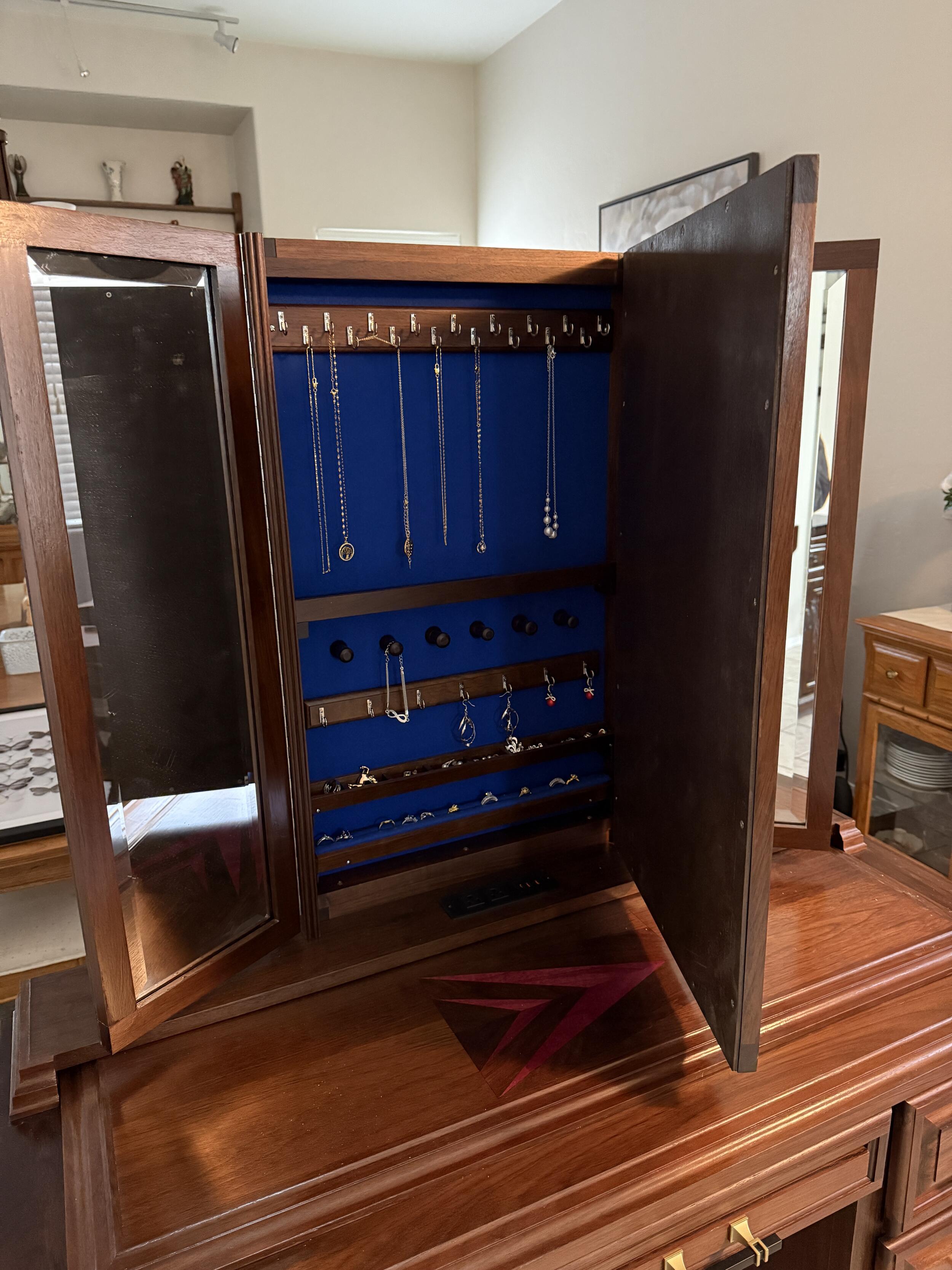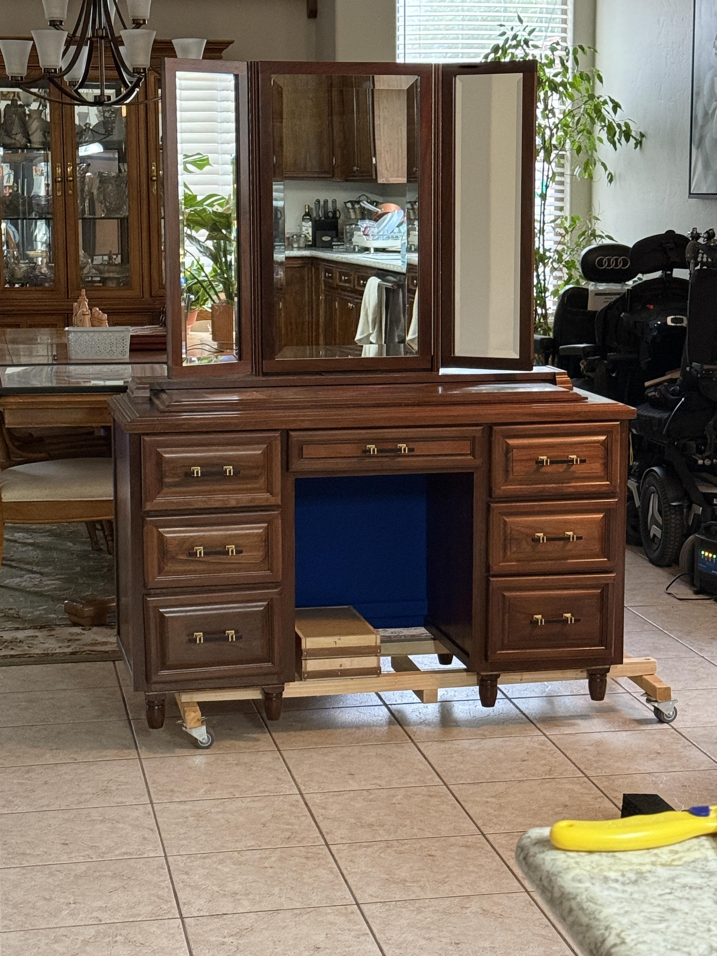 Dress and makeup vanity for granddaughter. Unit contains section for jewelry and special hidden compartment.