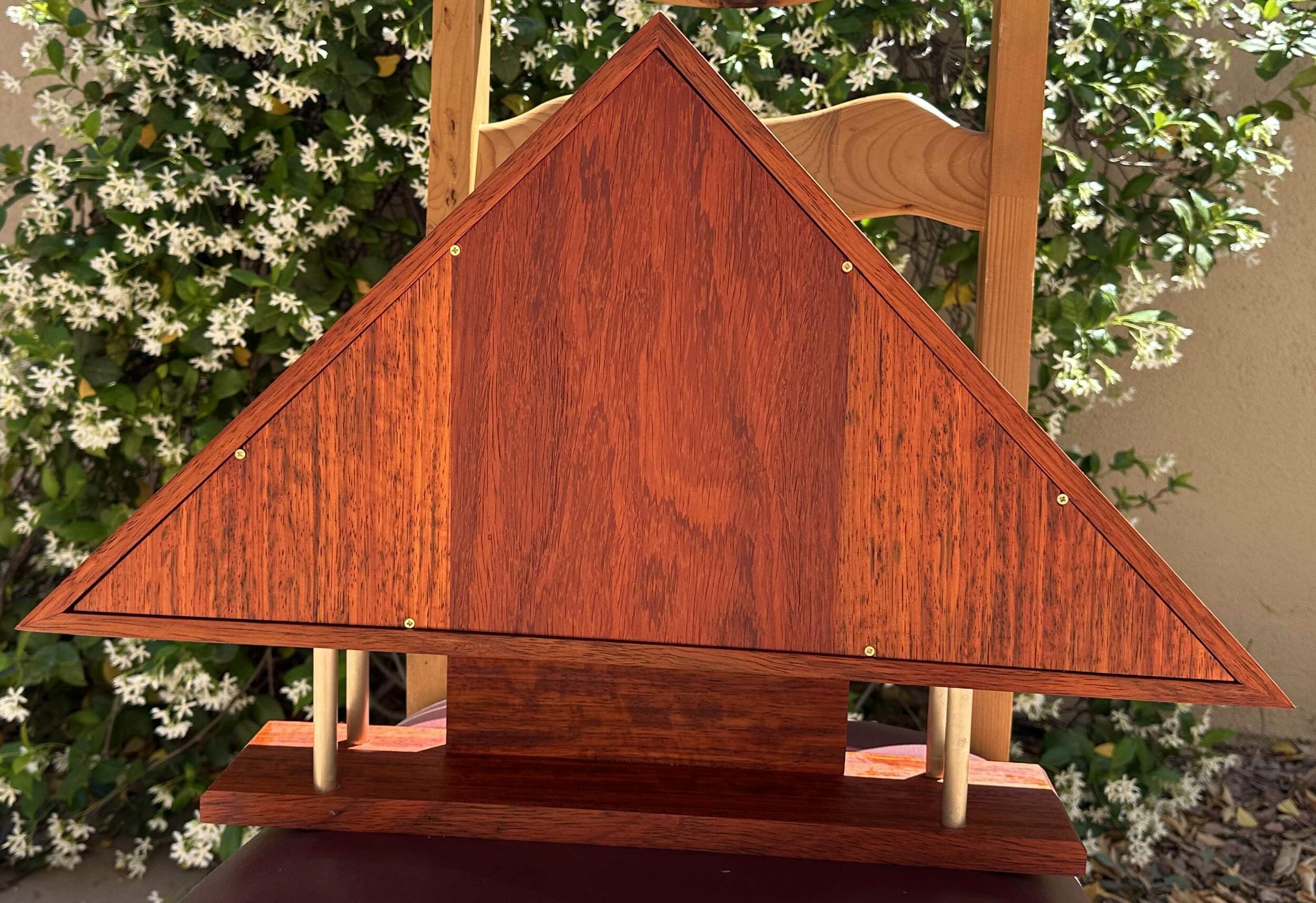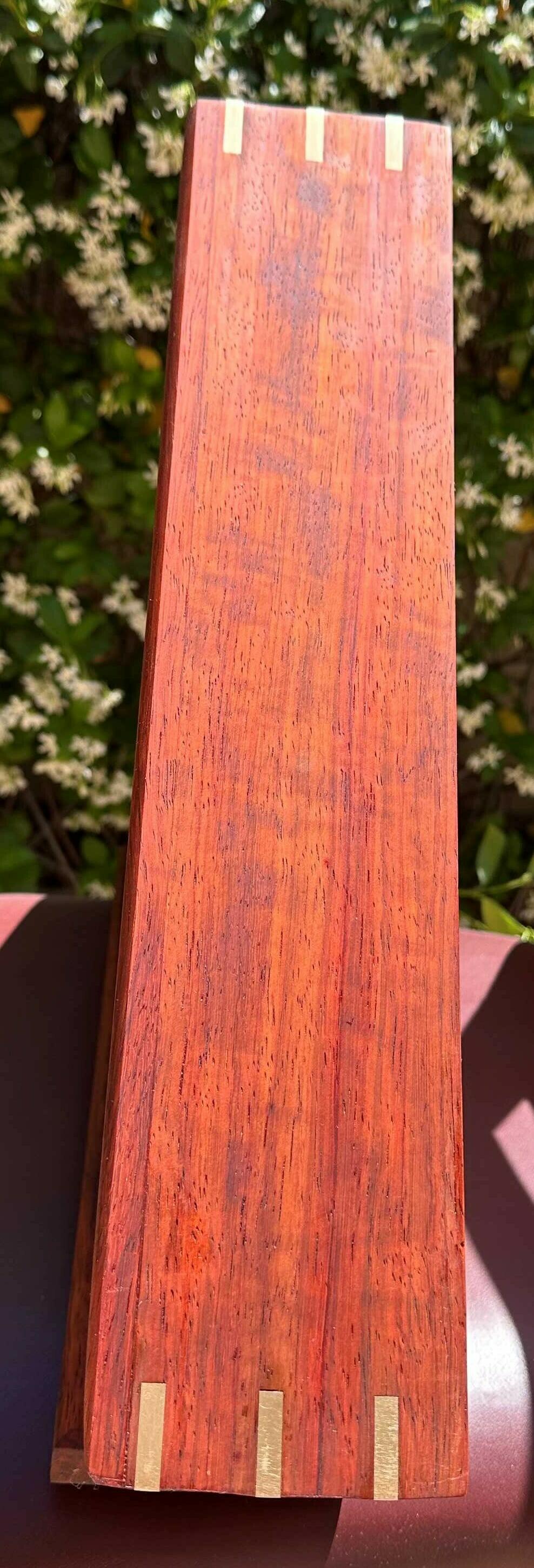 This was made using brass splines and brass rod. I cut the dado slots as well as the brass splines using a Shaper Origin on Bench Pilot. I also cut and engraved 1/4" brass to make the plaque. I cut boards in half with a band saw to make the 1/4" thick solid back and finished the project with Odie's Oil.