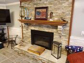 $4000 order of the most beautiful cherry would yields a million dollar look to my remodeled basement.& Fully DIY project.Needed son-in-law to help set it in place.& Cherry acents at fireplace stone edges,and at corners and edges of teh white stone waincote. -- Orginally posted by MiG