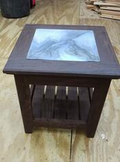 Patio end table made with lacquered roasted oak with epoxy tile -- Orginally posted by jerry010101