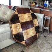 We used redwood burl mappa burl and walnut burl veneers to create the patter for our wonderful table top -- Orginally posted by Dennis