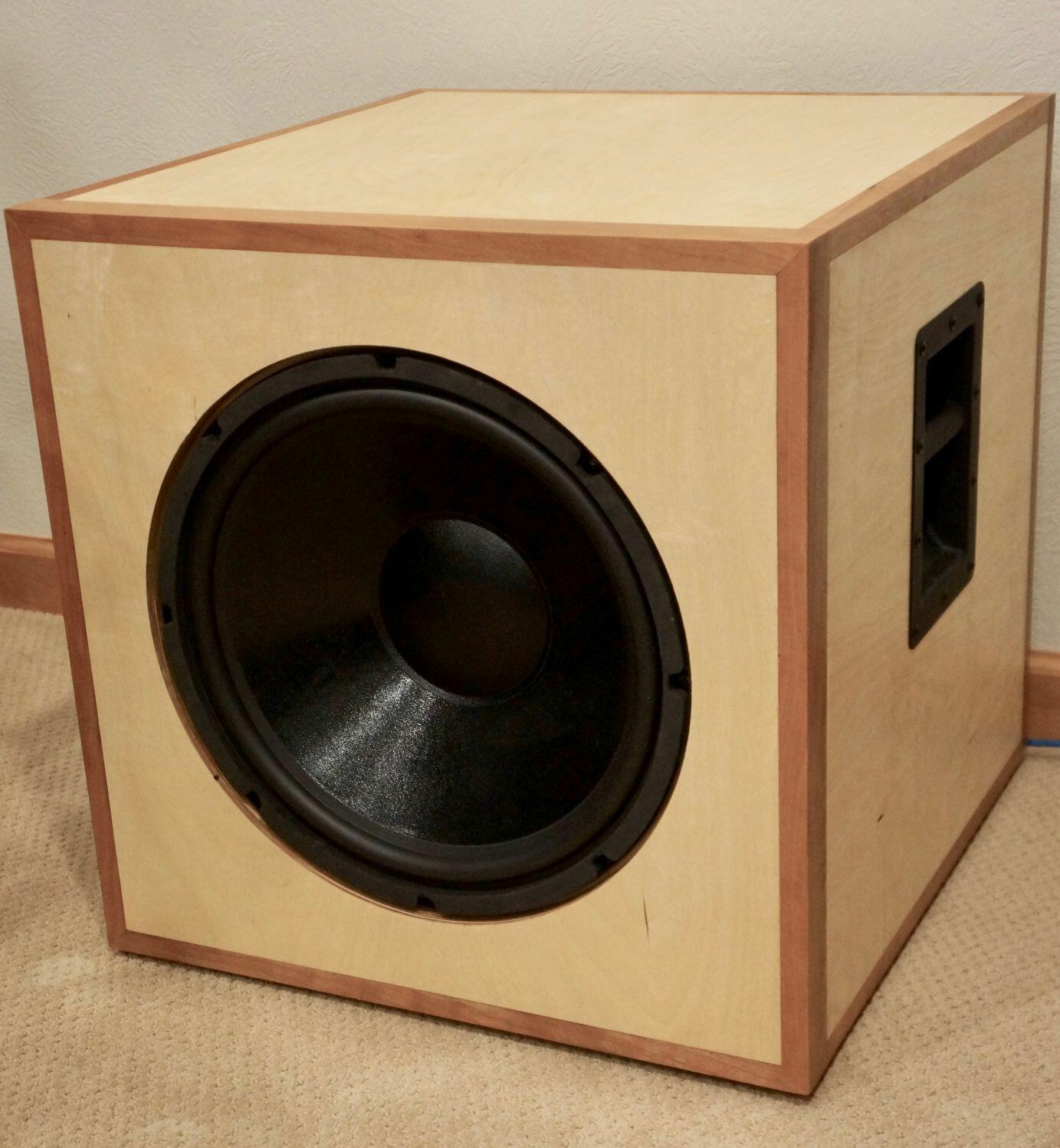 Decided to try my hand at making my own subwoofers. Made from 3/4 x 20 square Baltic Birch panels. Trim is Cherry. Interior volume is 4.6 ft.³. They sound great!!!
