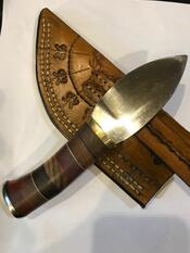 The blade is 1095 carbon steel an the handle is make of 7 of the 8 hard woods in the sample pack that I bought -- Orginally posted by MTwibell
