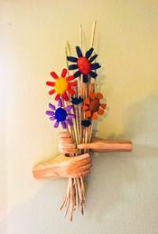 I made a Picasso print into a 3D wall sculpture using saguaro wood for the flowers and stems, pine and cedar for the hands. I have a lot of room for improvement but really enjoyed my first project. Going from 2D to 3D had some unexpected challenges especially in the curvature of the hands. I made this for a birthday gift for a friend who had the print. I enjoyed the colors. -- Orginally posted by Jerome