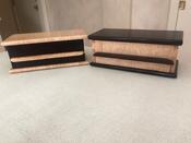 Desktop organizers as designed by Paul Sellers of Woodworking Master Classes. Both are made of roasted walnut and curly maple from Woodworkers Source and done almost completely with hand tools. Roasted walnut produces a fine dust which can be irritating, so a dust mask is useful. It is also somewhat brittle so needs sharp tools and care when shaping. -- Originally posted by linuxuser63