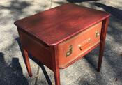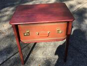 Made with Cherry lumber using the suitcase for dimensional measurements. The cherry lumber that I had was not evenly colored, so I used the Charles Neil anti blotching product, then a gel stain, with lacquer top coats.