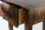 Table I made for my son's nursery. I combined the rugged live-edge walnut with colorful canarywood to convey a hidden beauty underneath the rugged exterior. I thought this would be a great way to encourage my son's imagination. Opening the drawer to see vivid colors that you wouldn't be expecting.