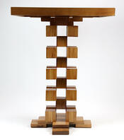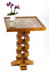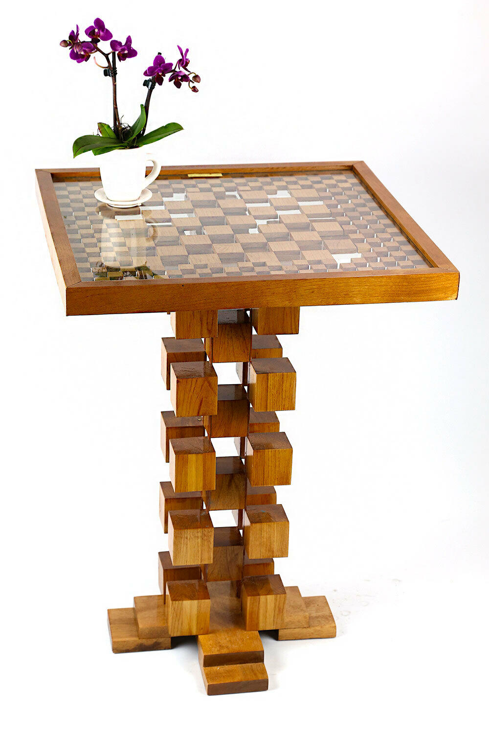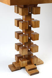 The Improbable Table is made by Dennis Minikel and entered in the Woodworkers Source "Accent Tables" contest in 2017. The question remains - take a look at the base and try to figure out how this table stays upright.