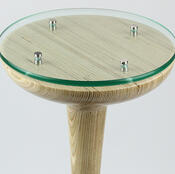 Andy Pulsipher used laminated baltic birch plywood and sculpted away the excess to create a round plant stand with a glass top.