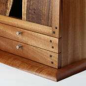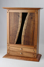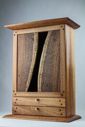 Took a nod from the whole "river table" thing that's going on in the world and found a beautiful piece of live edge koa -- resawed it and did a "slip match" to make the live edges form sort of a river for the door panel.