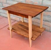 This started out with me cashing in my Rosewood Club rebate $ at the Tempe locale with no plans in mind but to find a great piece of wood. And boy did I, a heavily figured piece of 4/4 Granadillo which became the top. The lower shelf and legs were made from scrap from previous jobs so all I had to pay for was the wood for the skirt - a piece of Granadillo with a birdseye pattern. Top to legs and legs to skirt use M&T joinery, top has lower edge beveled along the length, shelf along the width, legs tapered below shelf. Finished with 2 coats of Danish oil and measures 24"l x 17.5”w x 22”h. My first time working with Granadillo but definitely not my last. It can clog belts on surface sanders but mills well and quite clean so hand sanding isn’t extreme.