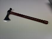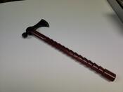 Handle is turned, then cut in half at the table saw. Run across the jointer to size to get that oval shape, then glued together. Wooden wedge at the top, epoxied in.