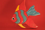 This is an exercise on segmentation, where you cut pieces from your pattern, shape and sand them and then glue them to a full backboard piece cut under sized. In segmentation the wood grain is unimportant because you end up painting it.