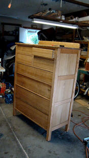 Prior to making this dresser, the style of furniture in my bedroom was what I called Early American Poverty, I saw this for sale on E bay did a little research and came up with the dimensions, having not built any furniture in quite some time this was a very enjoyable, challenging project for me.