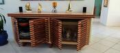 This was originally going to be a cabinet to house 2 wine coolers, so I designed it with open slatted doors. It morphed into a cabinet to store large serving platters, wine flasks, and large serving bowls which don't fit in our kitchen cabinets.