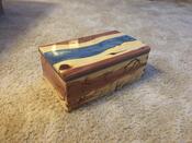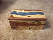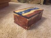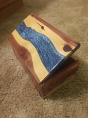 This box started out as a tree that fell at my sisters house in Duncanville Texas. I took it all the way from log to lumber to finished project. It was my first time cutting my own lumber as well as my first “river” project.
