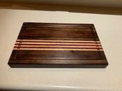 Peruvian Walnut cutting board. Probably the least cost effective cutting board on earth but Peruvian Walnut is looks great. This also has my homemade mineral oil beeswax finish that I make in the crockpot.