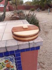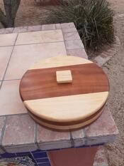 Created using Bubinga and Maple – the pieces were glued together and then cut out using my circle jig and router.