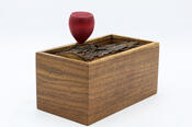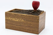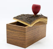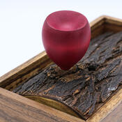He used a handsome chunk of live edge mesquite for the lid, and turned a handle in the shape of a purple prickly pear cactus bud.