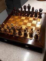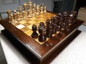Finish: Rub on Poly on board Acrylic spray on the chess piece's
