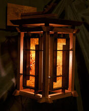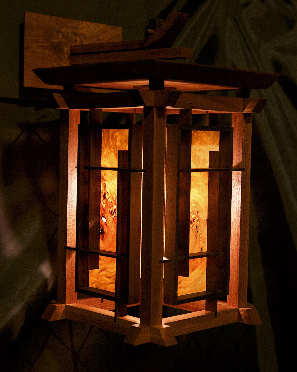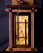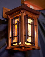 True to traditional Japanese woodworking techniques, this light sconce is held together only by the integrity of its joinery with wedges and dowels.
