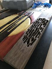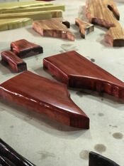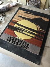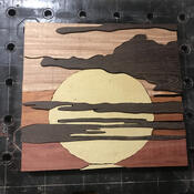 This is a full 12 pounds of solid wood! The only unnatural part about it is the epoxy reflections on the wenge “water.” I wanted a watery look and I certainly got it. This piece was a test of my intarsia and bandsaw skills to line up the cuts just so in order to get a close but not tight fit.